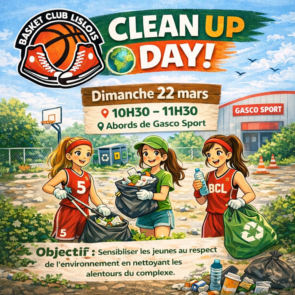 Le principe est simple : se mobiliser ensemble pour ramasser les déchets aux abords du gymnase et agir concrètement, à notre échelle, pour la protection de notre planète. Une belle occasion de sensibiliser les jeunes au respect de l’environnement tout en partageant un moment collectif et citoyen. Le matériel (gants et sacs) sera fourni par le club.