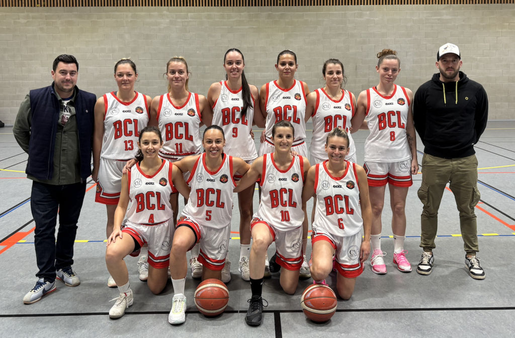Haut : Cécile E, Ophélie, Charlotte, Célia, Hortense, Thaïs, Stéphane (Coach)